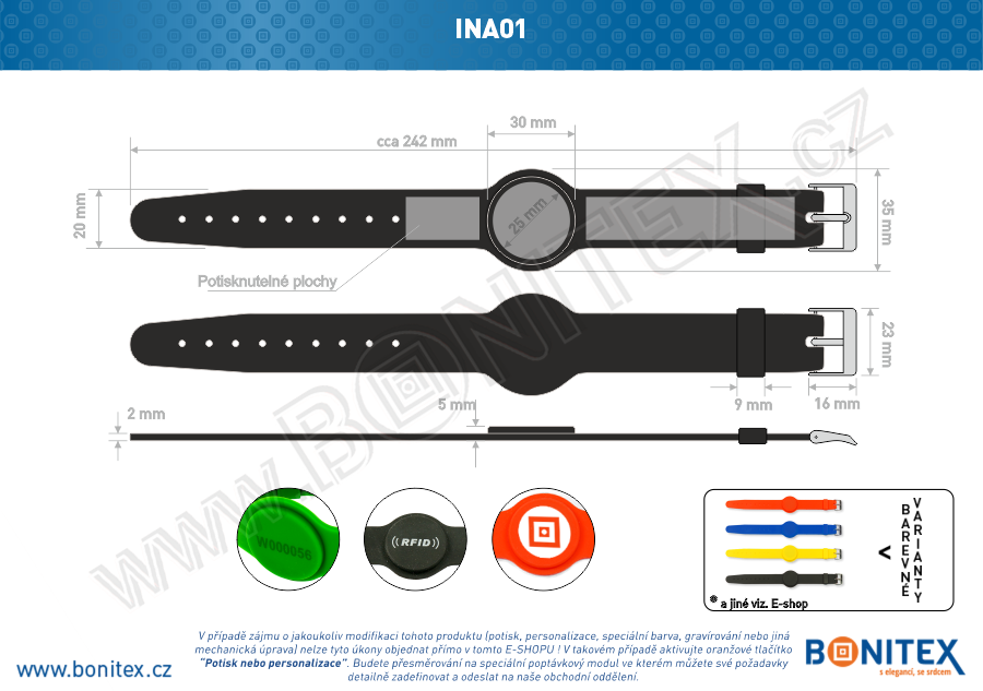 Náramek-silikon-242x20/35mm,kov.spona-s RFID-125kHz-černý