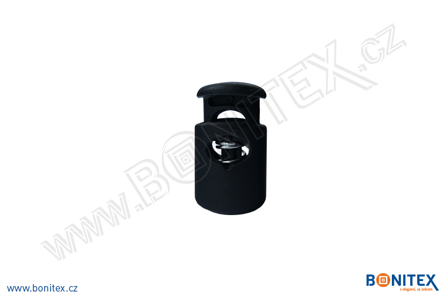 Plastový uzávěr pro jednorázový textilní identifikační náramek, vhodný pro opakované použití.