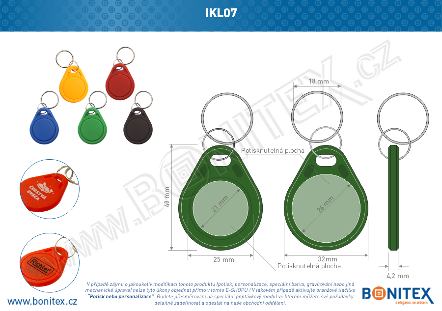 V případě zájmu o jakoukoliv modifikaci tohoto produktu (potisk, personalizace, speciální barva, gravírování nebo jiná mechanická úprava) nelze tyto úkony objednat přímo v tomto E-SHOPU ! V takovém případě aktivujte oranžové tlačítko (výše) "Potisk nebo personalizace" nebo klikněte ZDE. Budete přesměrování na speciální poptávkový modul ve kterém můžete své požadavky detailně zadefinovat a odeslat na naše obchodní oddělení.