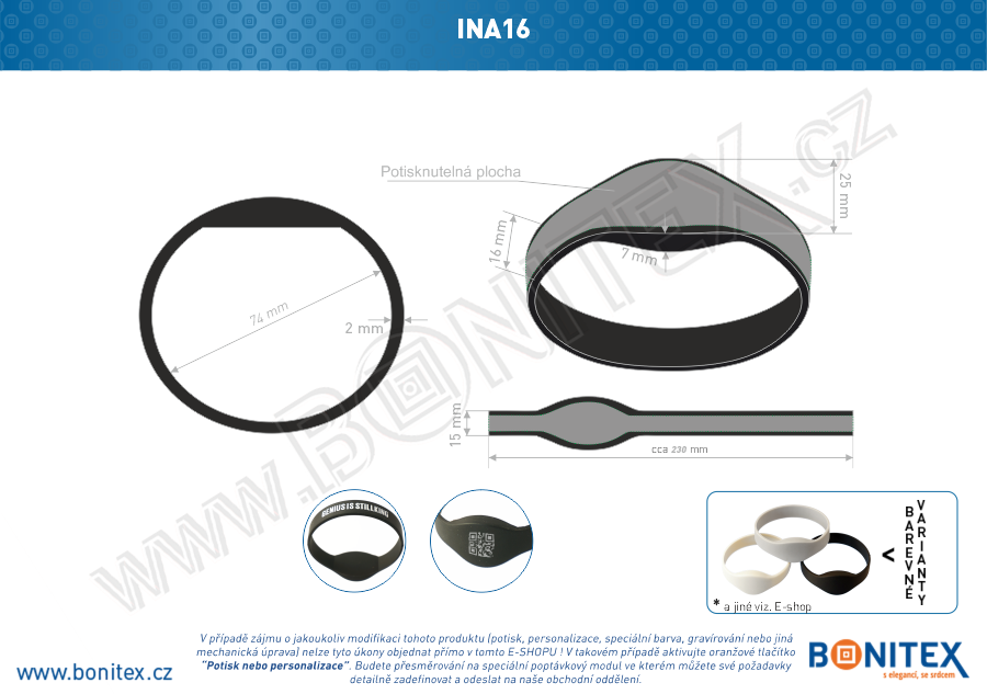 V případě zájmu o jakoukoliv modifikaci tohoto produktu (potisk, personalizace, speciální barva, gravírování nebo jiná mechanická úprava) nelze tyto úkony objednat přímo v tomto E-SHOPU ! V takovém případě aktivujte oranžové tlačítko (výše) "Potisk nebo personalizace" nebo klikněte ZDE. Budete přesměrování na speciální poptávkový modul ve kterém můžete své požadavky detailně zadefinovat a odeslat na naše obchodní oddělení.